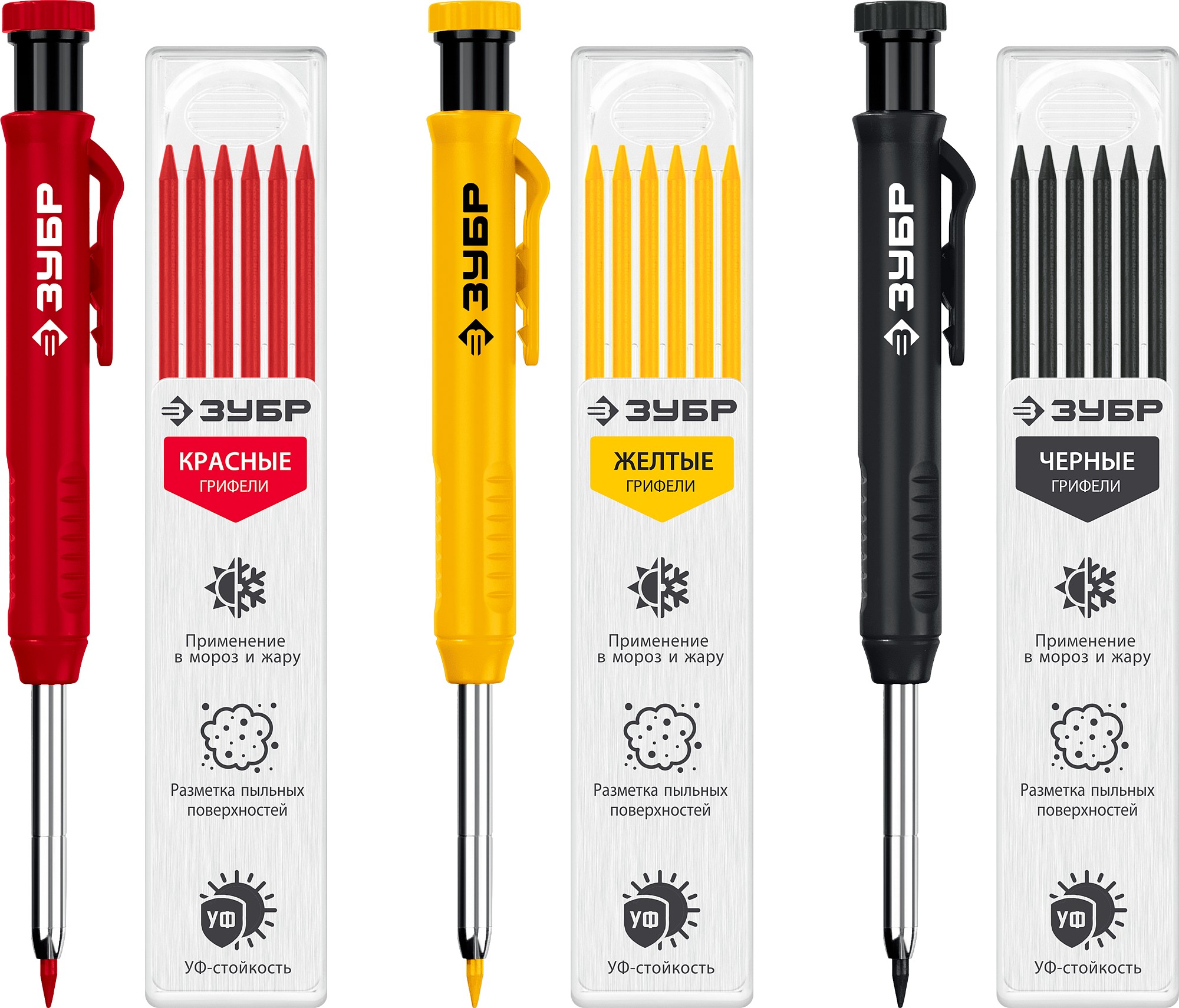 Автоматический строительный карандаш подходит для нанесения разметки на большинство материалов. Не выгорает на солнце, устойчив к температурным перепадам. Безопасен для человека и окружающей среды, т.к. не содержит токсических веществ.