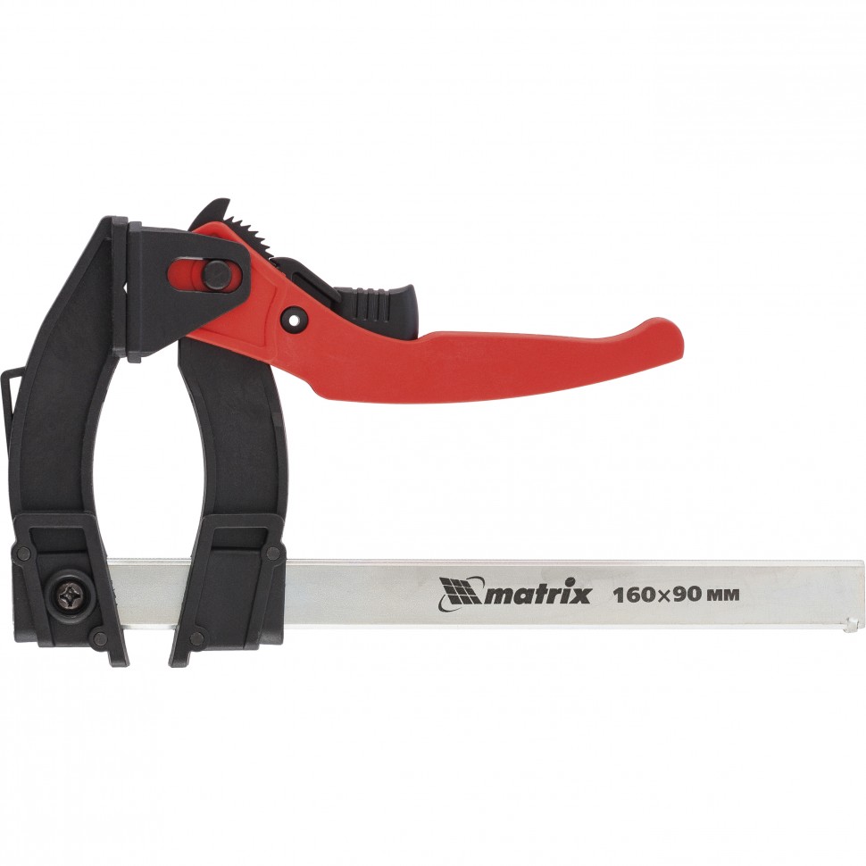 Струбцина реечная быстрозажимная, пластиковый корпус рычажно-храповой механизм, 160 х 90 х 240 мм, штанга 5 х 20 мм Matrix (20735)